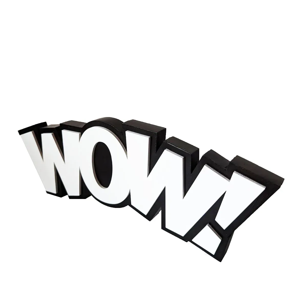 Wow! onomatopeya que expresa admiración, este elemento decorativo impacta en una mesa de centro, en una biblioteca, puedes combinarlos con otros objetos que quieras hacer notar.